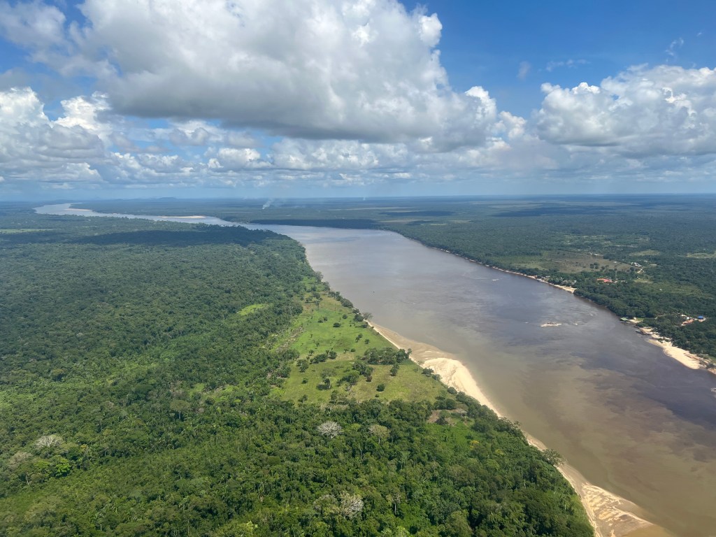 The birds eye view of the forest gives a sense of how the land in Vaupés is being impacted by land conversion activities. Given its challenging terrain and remoteness, Vaupés has attracted relatively little mineral extraction or large scale agriculture compared to other departments in Colombia. The patches of cleared forest for ‘chagra’- small-scale subsistence farming- appear as modest openings in the vast expanse, regenerating areas indicated by the bright trunks of Yarumo trees; pioneer species that quickly colonise deforested areas. Communities grow crops on small plots for three to five years before allowing the land to regenerate. They manage nutrient-poor soils by using controlled burning to release essential minerals and incorporating biochar to enhance soil fertility and moisture retention.