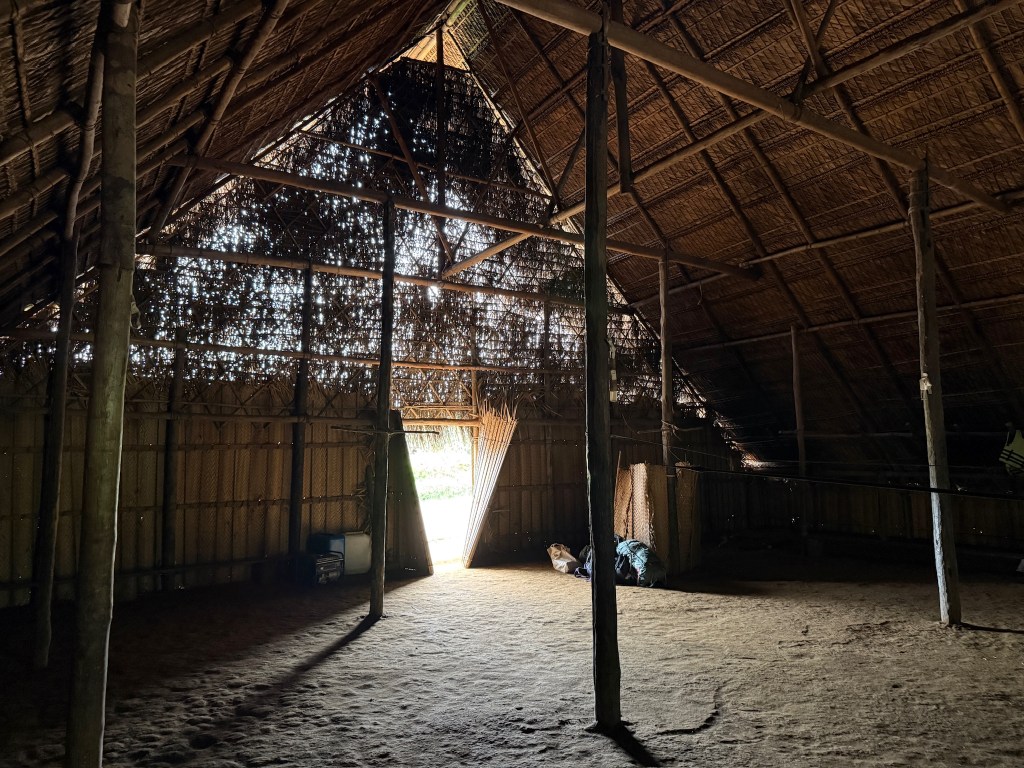 We spent our first night in a hammock in the maloka of the Morrocco community, falling asleep to the low murmur of men and elders sharing stories between blows of jopo, which is said to “sweeten the word”, enhancing communication and harmonious dialogue. At 5am I woke to the sound of roosters and women cooking- indigenous communities have traditionally woken at dawn, something the Spanish forced to change in other areas. Looking at a tattered poster of the Global Sustainable Development Goals on the maloka wall and specifically goal 6, access to clean water and sanitation, made me consider the unpleasant ordeal visiting the toilet during the night, and our instruction to use as little water as possible to clean our hands, given the community don’t have rainwater harvesting infrastructure. Only 65% of Vaupés has access to clean water and insufficient wastewater management has led to increases in infections and diarrheal and respiratory diseases, especially amongst children (Rodriguez, 2022). Communities in the area are in the process of organising together to become a reserve (Resguardo indígena) which would grant groups legal title over the land, place stronger protections on land and help them attract funding and support for projects such as water and sanitation.